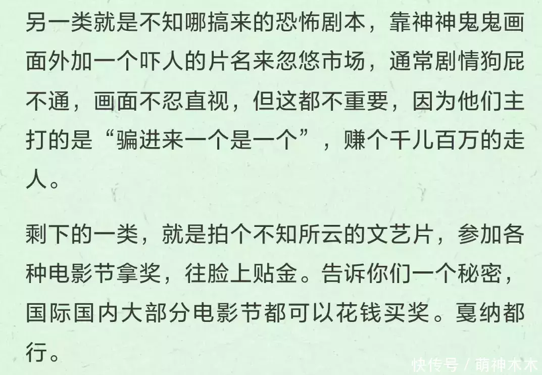 ——有人搞个项目赚补贴;有人骗进来一个是一个;有人拍片买奖给自己贴金。