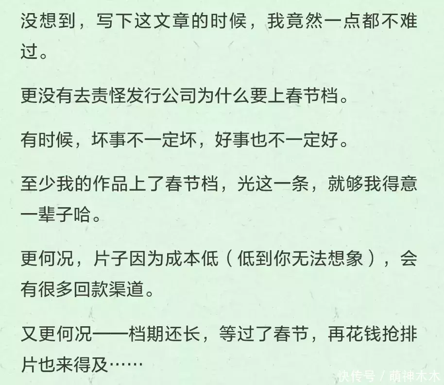 作为业内,《消失的我》的编剧直言,只要能上春节档,就够他们得意一辈子,片子成本低,会有很多回款渠道,过了春节档,还有机会花钱抢排片——别看这个导演哭、那个编剧闹的,人家电影圈还是不缺钱赚。