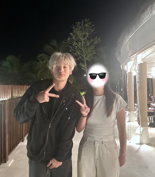 现在的他长到了一米七八,婴儿肥全退了,脸颊线条利落,一身黑色穿搭酷劲十足,还染了一头银色头发,站在镜头前身形挺拔,活脱脱一个大帅哥。